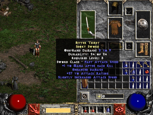 The first unique that dropped from a Ghoul in Catacombs Level 3~. Pretty good ;D.